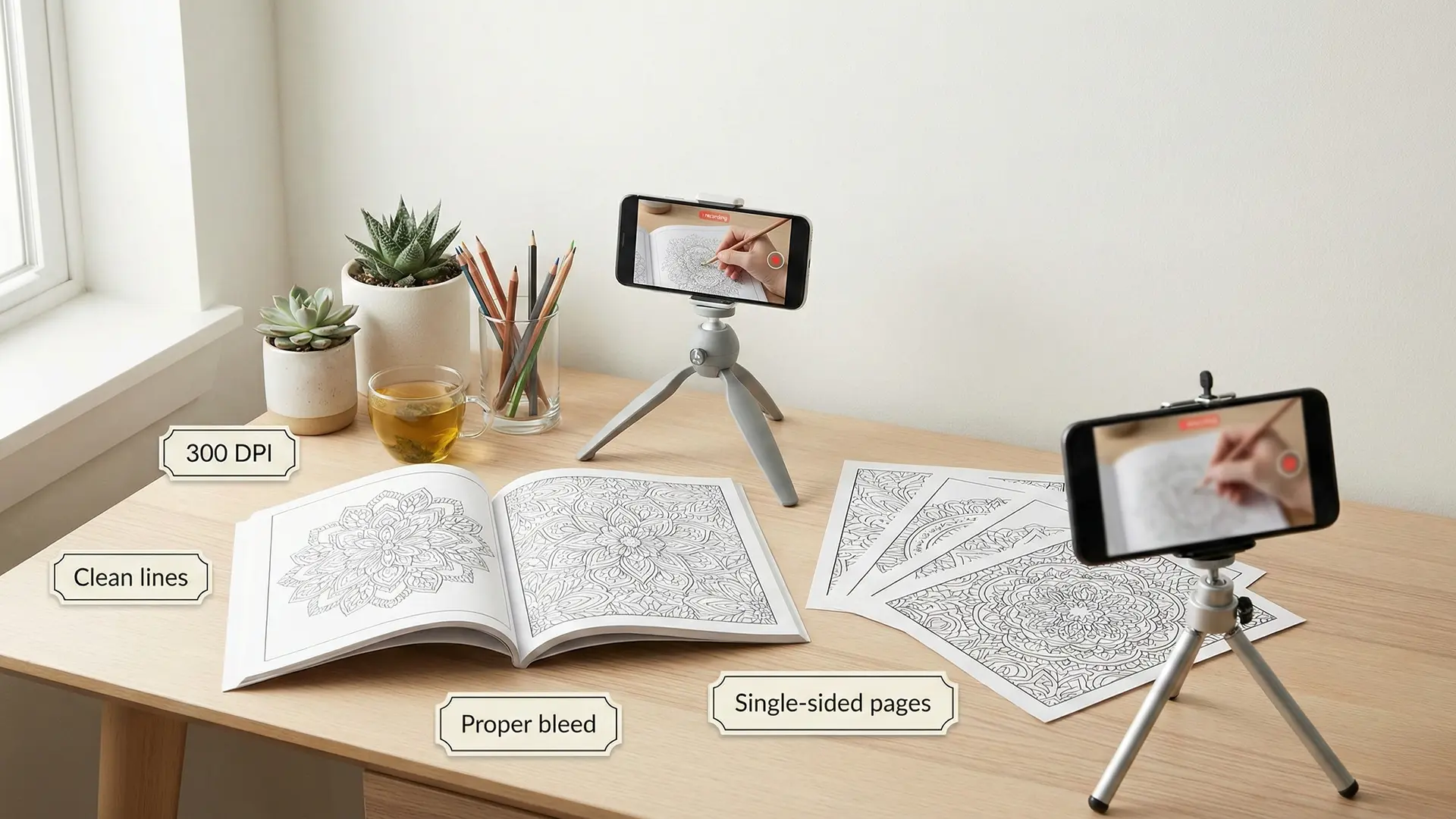 Viral success on TikTok and Instagram requires more than just good art—it requires high-quality video production. Before you can market your coloring book, you must first ensure the physical product is technically perfect. This guide covers the entire pipeline: from KDP production standards to the capture settings needed for buttery-smooth 60 FPS video.