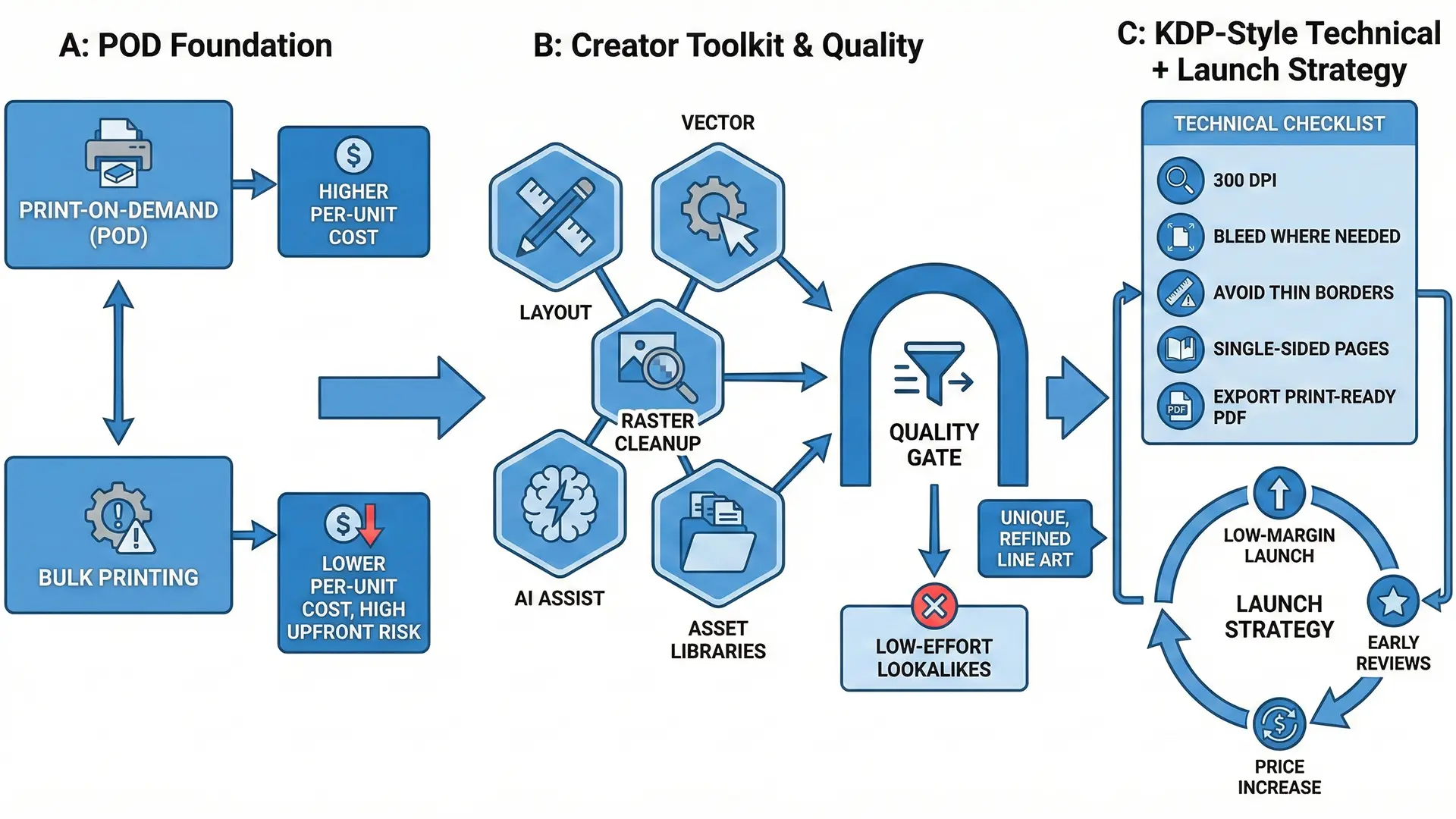 The Trade-off: POD is the “most expensive way to produce books” per unit. Unlike traditional offset printing (bulk orders from China), POD aims for accessibility over margin. Your strategy must account for this higher base cost.