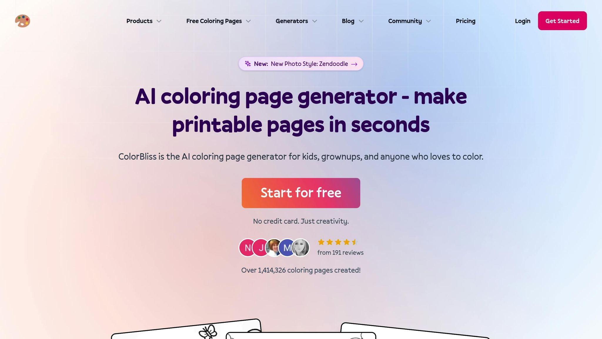 By January 2026, ColorBliss had powered over 1.41 million coloring pages and 185,000 coloring books. This platform uses AI to transform photos into black-and-white line art, delivering outputs as high-resolution PNGs or PDFs at 300 DPI. Supported file formats include JPEG, JPG, PNG, and WebP.