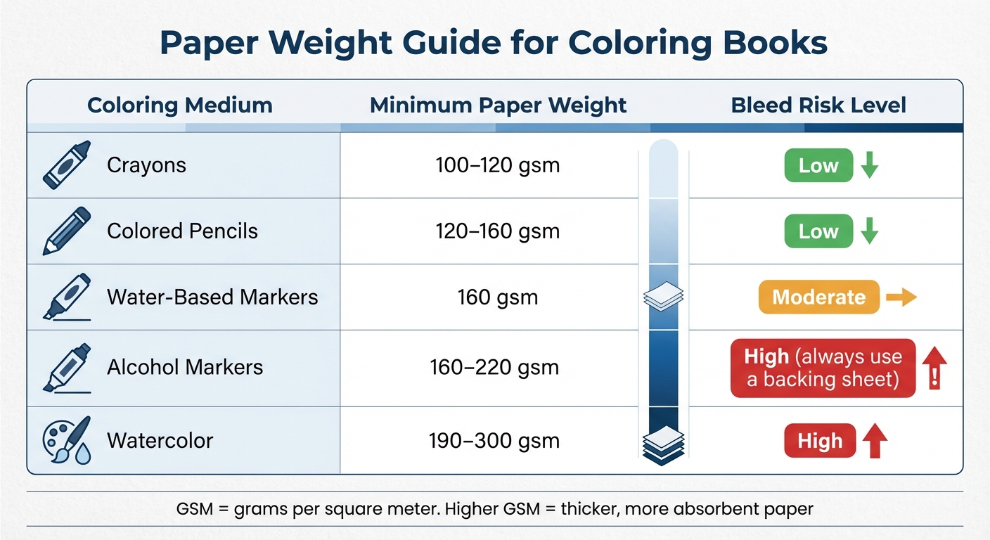 Here’s a quick guide to paper weights and their suitability for different coloring tools: